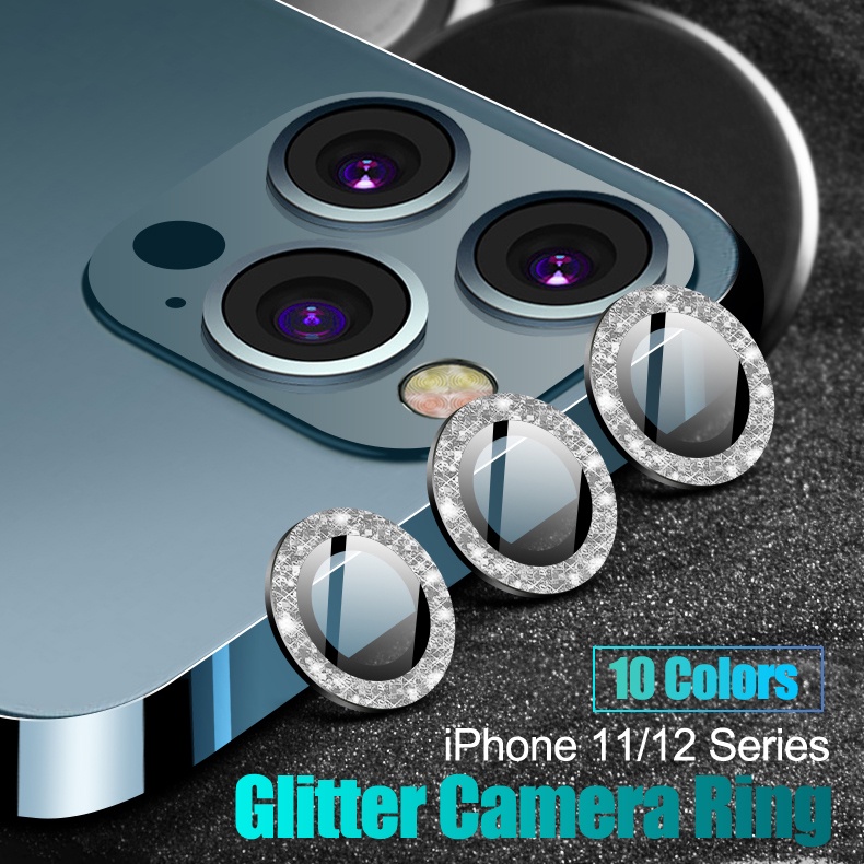 Nắp dán đính đá bảo vệ ống kính camera cho Iphone 12 Pro Max 11 Pro free ship